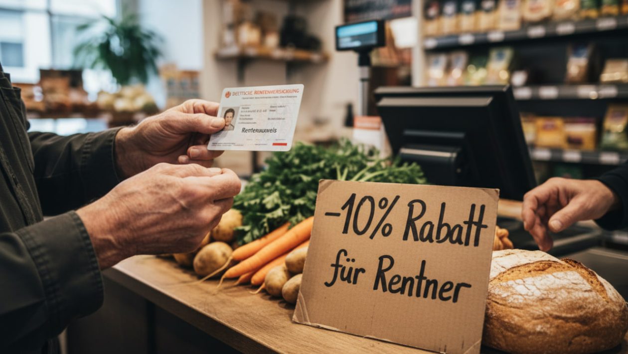 Kein Smartphone, kein QR-Code, keine Kundenkarte, kein Daten-Diebstahl. Die älteren Herrschaften müssen an der Kasse einfach nur kurz ihren offiziellen Papier-Rentenausweis vorzeigen, und die Kasse zieht automatisch zehn Prozent von der Summe ab.