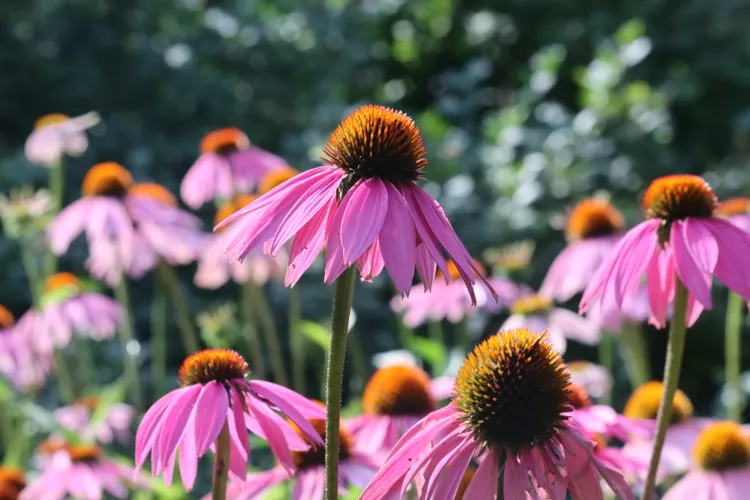 Mit seinem groben, leicht stacheligen Laub und seinen Stielen ist der Sonnenhut (Echinacea) ein fester Bestandteil in rehresistenten Bepflanzungen. „Zwar ist keine Pflanze völlig immun, doch die Textur und die faserige Beschaffenheit der Sonnenhutpflanzen machen sie weniger attraktiv als zartere Alternativen“, sagt Foster. „Von Bestäubern und Vögeln gleichermaßen geliebt, bietet Echinacea eine breite Farbpalette, die über das klassische Violett hinausgeht – man denke an Korallenrot, Weiß und leuchtendes Orange.“ Diese winterharten Stauden gedeihen in voller Sonne und gut durchlässigem Boden und sind, sobald sie sich etabliert haben, trockenheitstolerant.