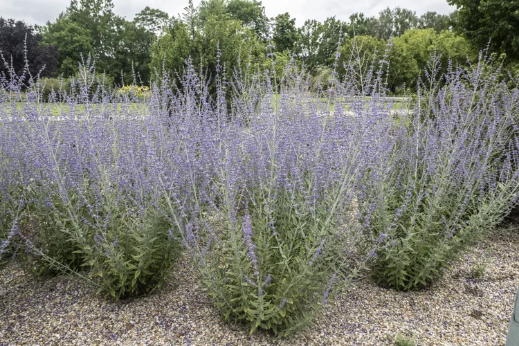 Russischer Salbei enthält Kampfer, eine aromatische Verbindung, die der Pflanze einen starken Geruch verleiht, den Rehe nicht mögen. Pflanzen Sie Russischen Salbei an einem Standort mit voller Sonne und gut durchlässigem Boden. Diese Pflanze ist trockenheitstolerant, sobald sie sich etabliert hat, und bringt von Sommer bis Herbst verspielte violette Blüten hervor.