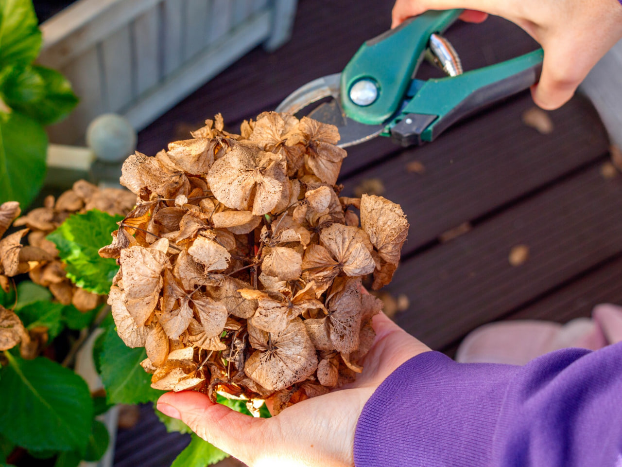 Zeitpunkt des Rückschnitts: Kurz nach der Blüte (im Sommer) leicht zurückschneiden, um die Hortensie in Form zu halten