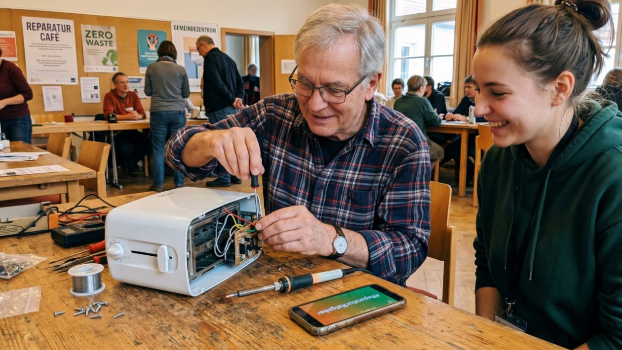 Dieses Konzept aus den Niederlanden ist in Deutschland förmlich explodiert. Das Prinzip ist genial: Städte, Kirchen oder Vereine stellen einen Raum zur Verfügung. Dort sitzen ehrenamtliche Profis – oft pensionierte Elektriker, Radio- und Fernsehtechniker, Ingenieure oder begeisterte Bastler. Bürger können einfach mit ihrem defekten Gerät (vom Staubsauger über den Föhn bis hin zum Waffeleisen) vorbeikommen. Die Experten schrauben das Gerät auf, finden den Fehler (oft ist es nur eine durchgebrannte Sicherung für 10 Cent oder ein gerissenes Kabel) und reparieren es gemeinsam mit dem Besitzer.