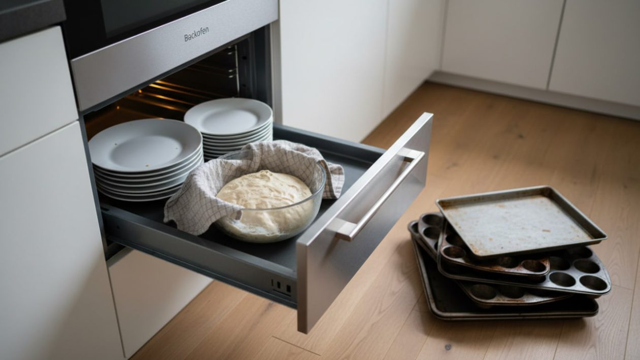 Das perfekte Hefeteig-Labor: Deutsche lieben frisches Brot und Pizzateig. Doch Hefeteig braucht konstante, sanfte Wärme (ohne Zugluft), um perfekt aufzugehen. Wenn der Ofen oben läuft (oder gerade auskühlt), ist die Schublade unten der ultimative Ort! Stellen Sie die Schüssel mit dem Teig einfach hinein. Die sanften 35 Grad lassen den Teig explodieren wie beim Profi-Bäcker.