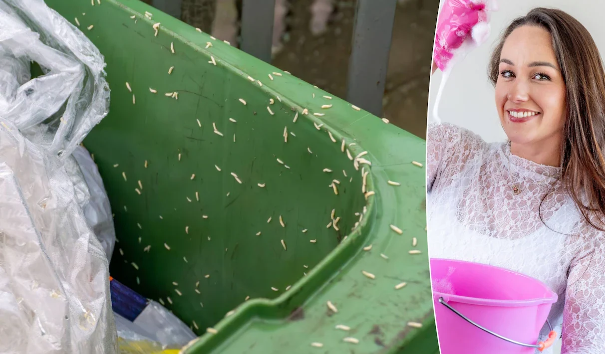 Sobald es wärmer wird, ist die Wahrscheinlichkeit groß, dass man ihnen begegnet: Fliegen und Maden im Müllcontainer. Nicht gerade etwas, worauf man sich freut. Glücklicherweise kann man die Viecher mit einem einfachen Trick fernhalten. Reinigungsexpertin Melenie Veldhuizen erklärt, wie das geht.